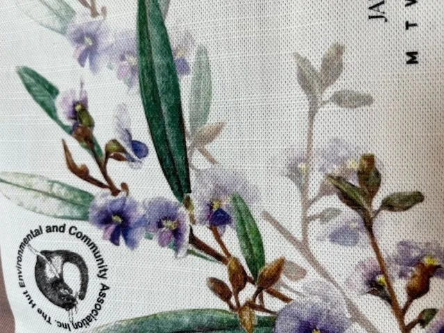 The featured flora is Hovea acutifolia, which can be seen flowering on and around Mt Coot-tha in August and September.